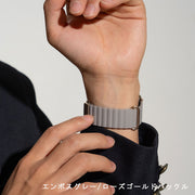 Apple watch band アップルウォッチ バンド マグネットレザーバンド エンボスグレー ローズゴールドバックル