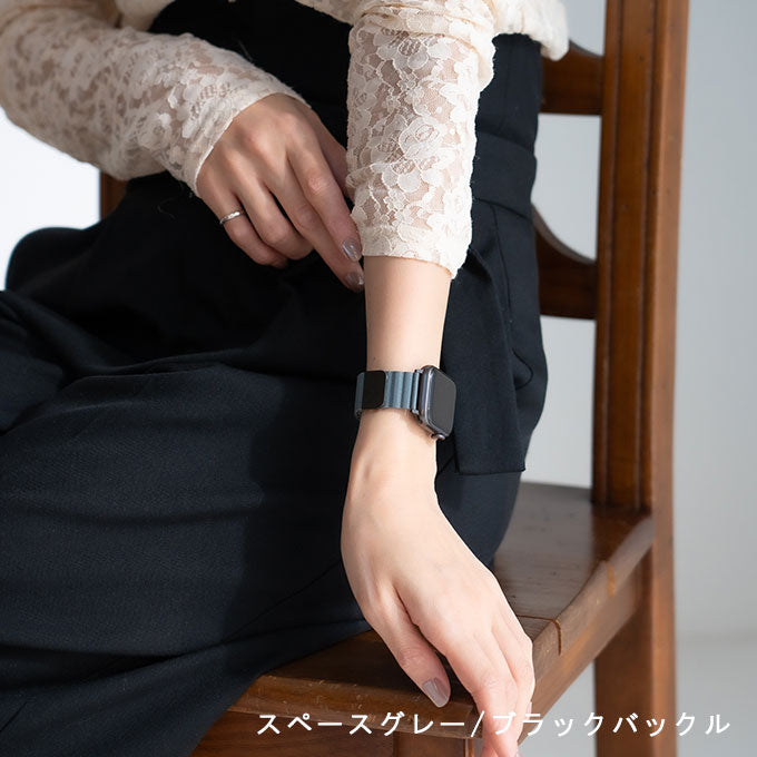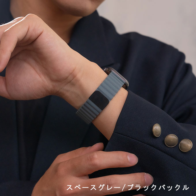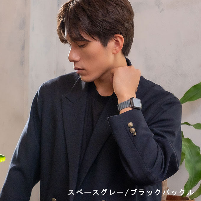 Apple watch band アップルウォッチ バンド マグネットレザーバンド スペースグレー ブラックバックル