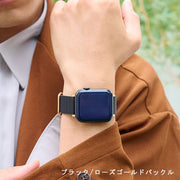 Apple watch band アップルウォッチ バンド マグネットレザーバンド ブラック/スターライト/ローズゴールドバックル