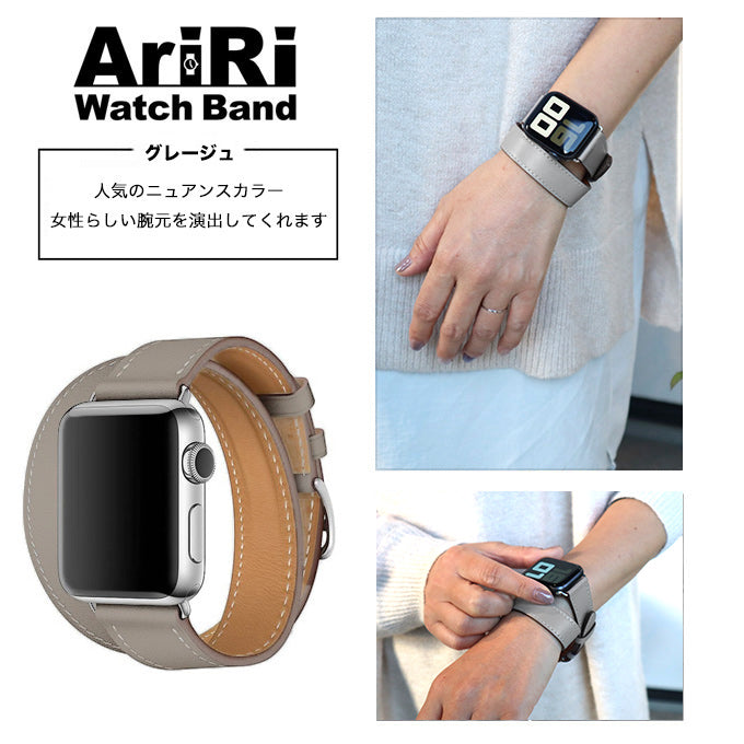 アップルウォッチ バンド Apple watch band 本革 レザー 2重巻き メンズ レディース グレージュ