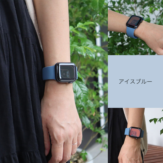 アップルウォッチ バンド Apple watch band くすみカラー シリコン スポーツ ラバーバンド アイスブルー