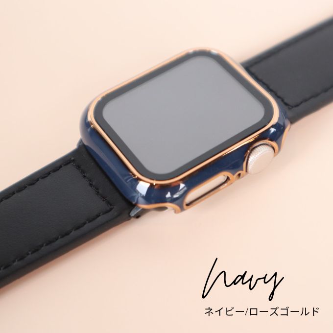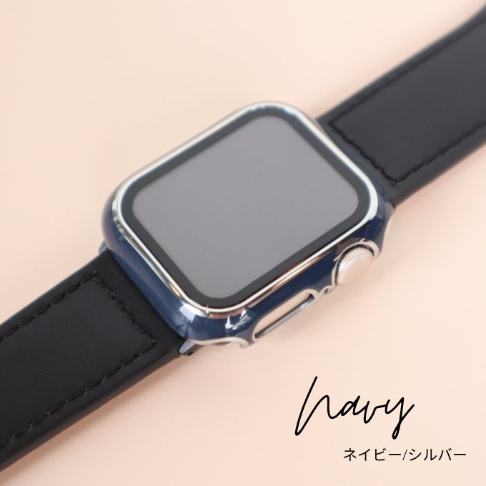 アップルウォッチ ケース カバー ラインデザイン 40mm 41mm 44mm 45mm 全面保護 防水 Apple Watch ネイビー